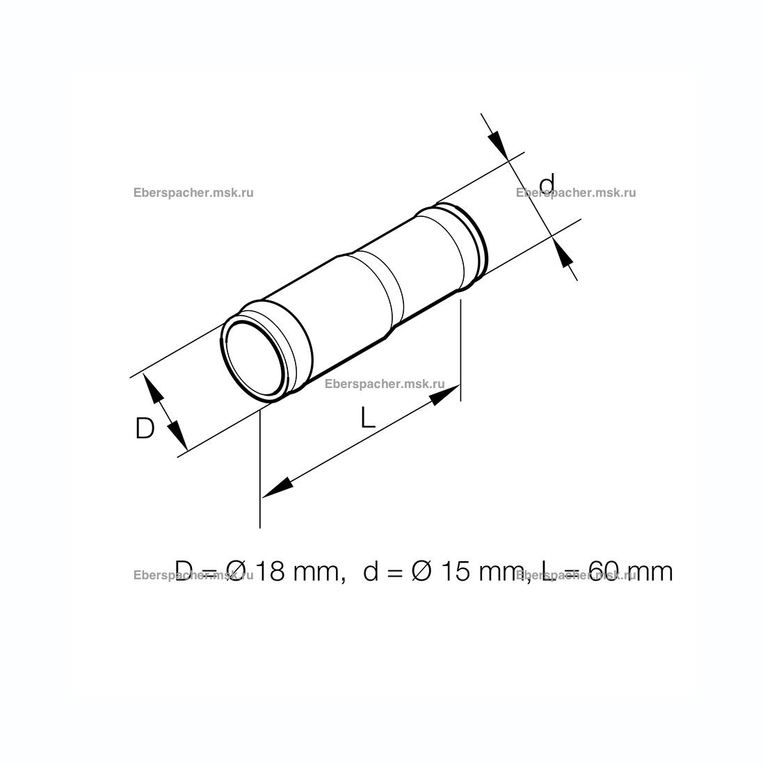 Переходник латунный 18/15 мм - предназначается для замены вышедшей из строя запасной части Eberspacher (Эберспехер) с артикулом (201645800201).