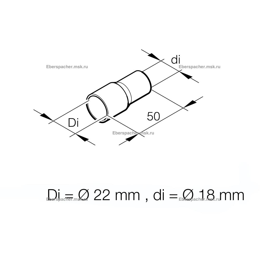 Переходник шлангов 22/18 мм - предназначается для замены вышедшей из строя запасной части Eberspacher (Эберспехер) с артикулом (201645890008).