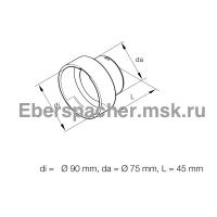 Переходник из пластика 90/75 мм для воздуховода - предназначается для замены вышедшей из строя запасной части Eberspacher (Эберспехер) с артикулом (221000010012).