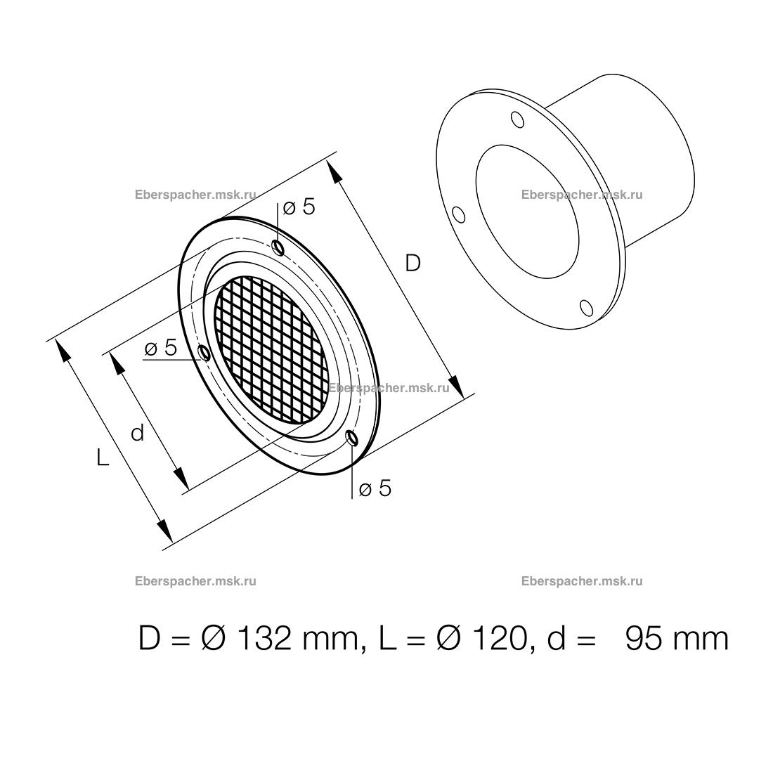 Решетка воздуховода металлическая для воздуховода D=90 mm - предназначается для замены вышедшей из строя запасной части Eberspacher (Эберспехер) с артикулом (251226890500).