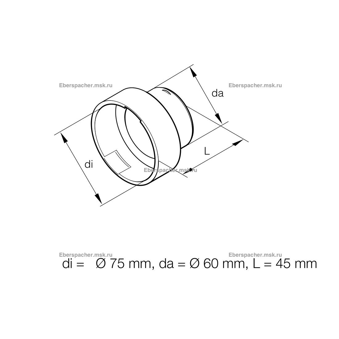 Переходник воздуховода 75/60 из пластика - предназначается для замены вышедшей из строя запасной части Eberspacher (Эберспехер) с артикулом (251226890050).