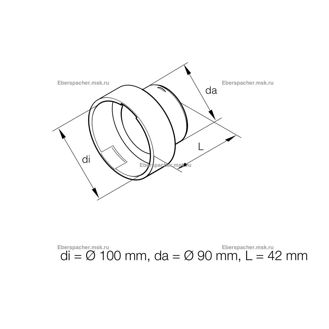 Переходник из пластика для воздуховодов д.90/100 мм - предназначается для замены вышедшей из строя запасной части Eberspacher (Эберспехер) с артикулом (251226890049).