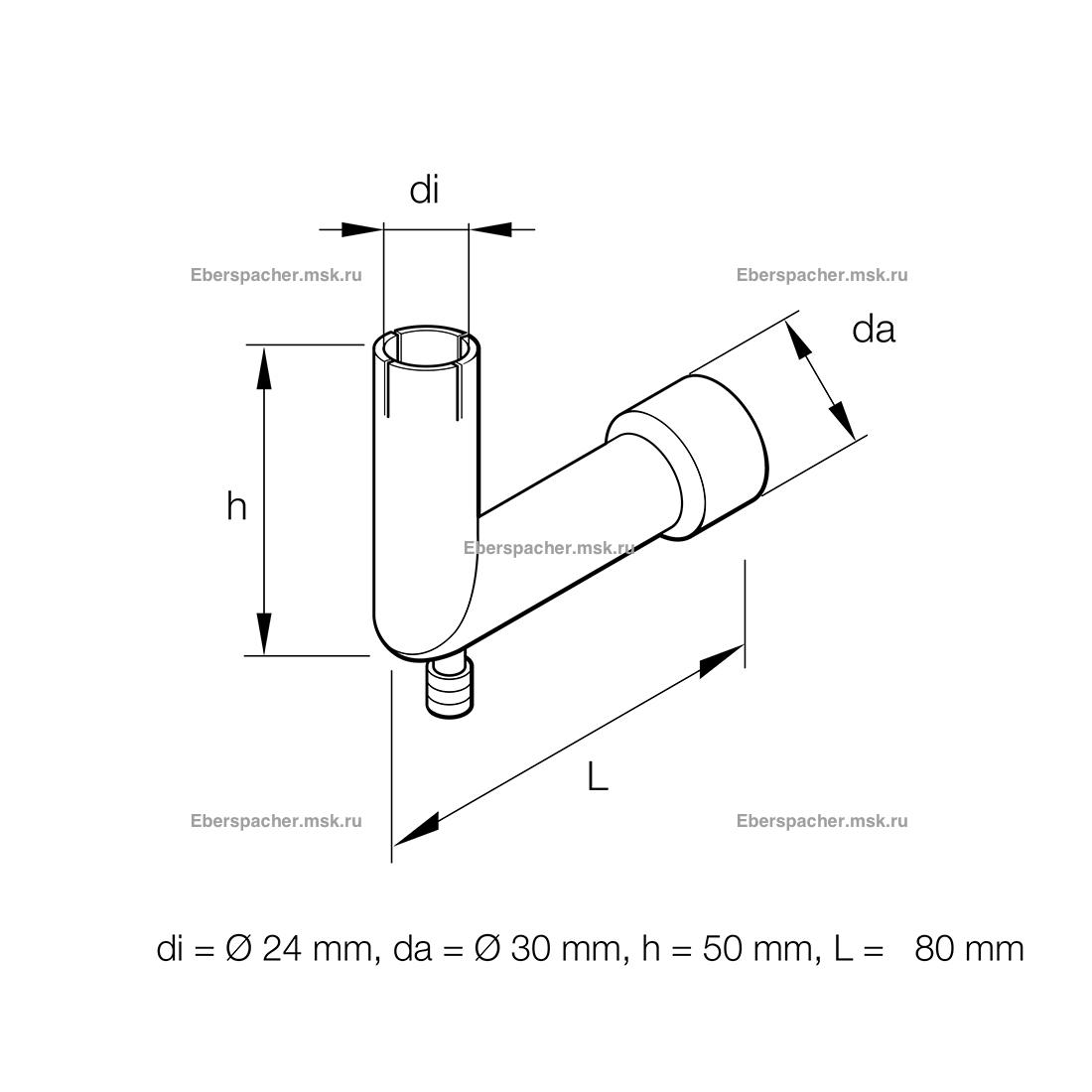 Колено угловое выхлопной системы отопления 24-30 мм - предназначается для замены вышедшей из строя запасной части Eberspacher (Эберспехер) с артикулом (221050893900).