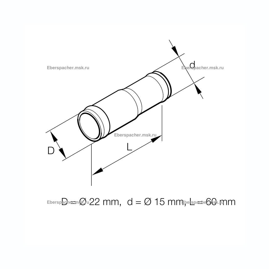 Переходник латунный D 2215 ММ - предназначается для замены вышедшей из строя запасной части Eberspacher (Эберспехер) с артикулом (251214890011).