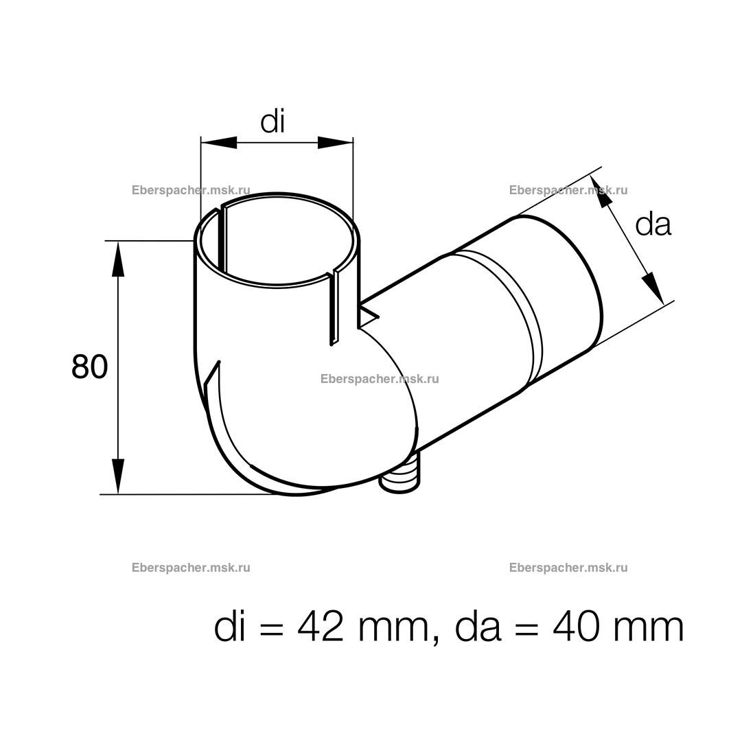Колено выхлопной трубы 42х40 - предназначается для замены вышедшей из строя запасной части Eberspacher (Эберспехер) с артикулом (251226894600).