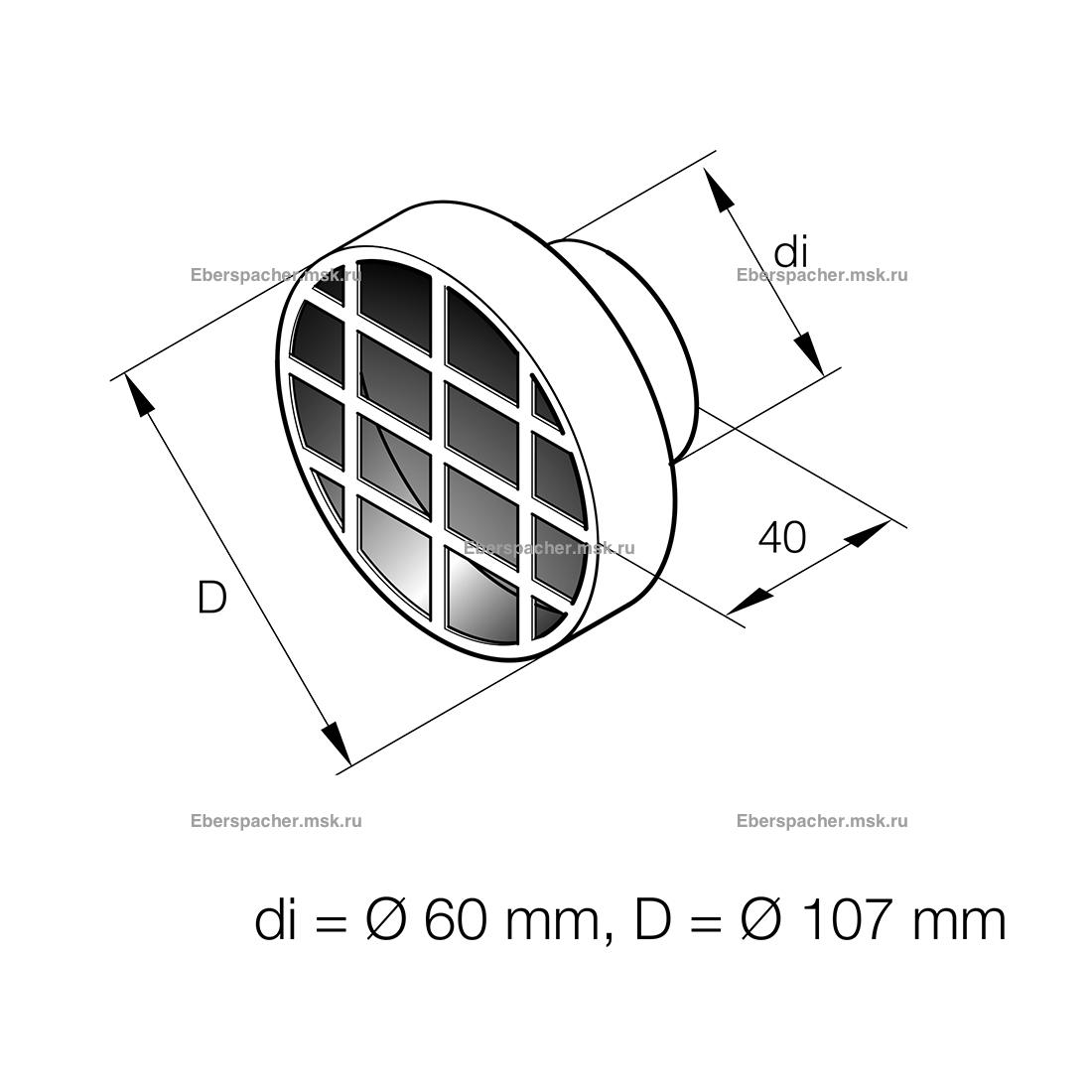 Решетка к воздуховоду D=60 мм из пластика с фильтрующим элементом - предназначается для замены вышедшей из строя запасной части Eberspacher (Эберспехер) с артикулом (251688890500).